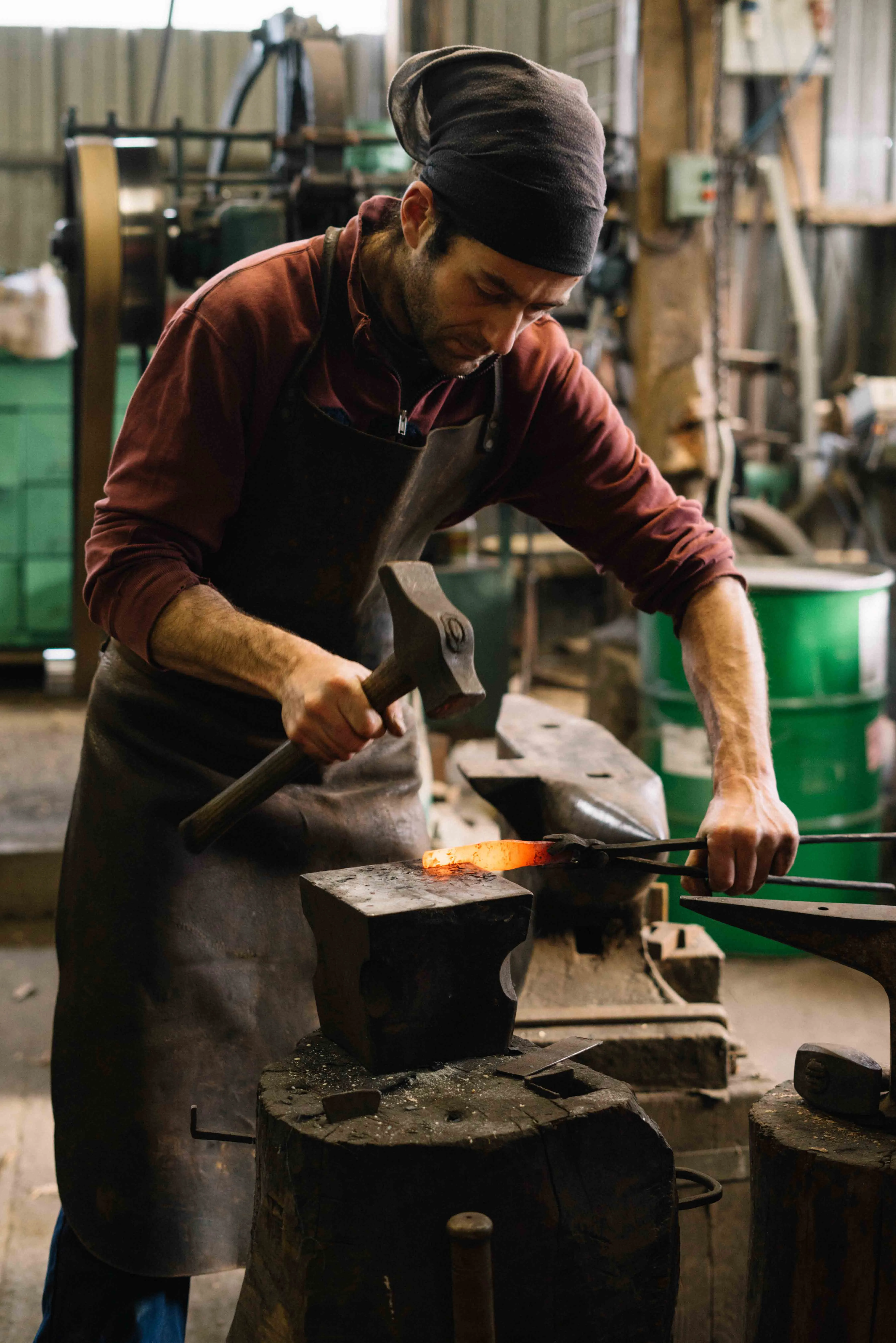 La rencontre avec la forge débute pour Martin CLAUDEL en 2005, lors d’un stage à la forge-musée d’Étueffont, en Franche-Comté, aux côtés du forgeron Robert Greset, dans un contexte de forge historique. Il poursuit en 2006 avec un CAP ferronnerie d’art, avant de s’orienter vers la taillanderie, un cheminement qui l’amène à rencontrer en 2010 Bernard Solon, dernier forgeron taillandier de sa génération en France oeuvrant au sein de la Taillanderie Alexis, à Orléans. Dans le cadre d’un stage d’initiation à ses côtés, il découvre les techniques traditionnelles de la fabrication d’outils tout en mesurant l’héritage millénaire de ces savoir-faire en voie d’extinction : c’est l’ouverture des portes sur un nouveau monde.